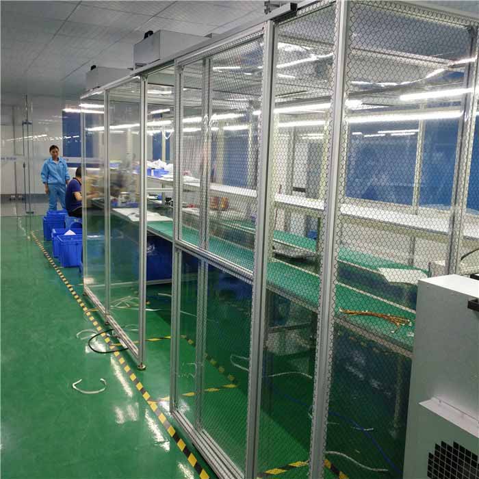 高效過濾器放置在由放在不銹網(wǎng)支架支撐棚架的托框上。頂部由盲板鋪蓋,密縫嚴(yán)密,四周用防靜電簾圍縫,四周底部利用正壓自然排風(fēng)等形式,使?jié)崈襞飬^(qū)內(nèi)達(dá)到潔凈度。潔凈棚其具有安裝快速、施工周期短、價格低廉、移動方便等特點,如流水線作業(yè)區(qū)域,高精確度產(chǎn)品組裝區(qū)。